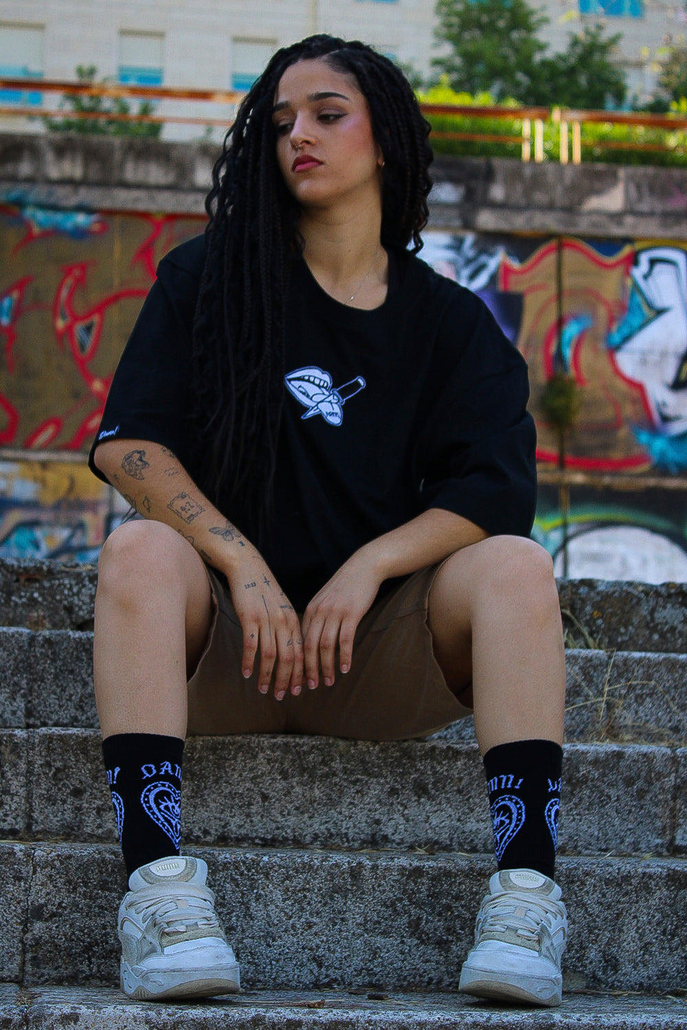 Bordado delantero «Snitches» en color blanco tamaño 10cm.