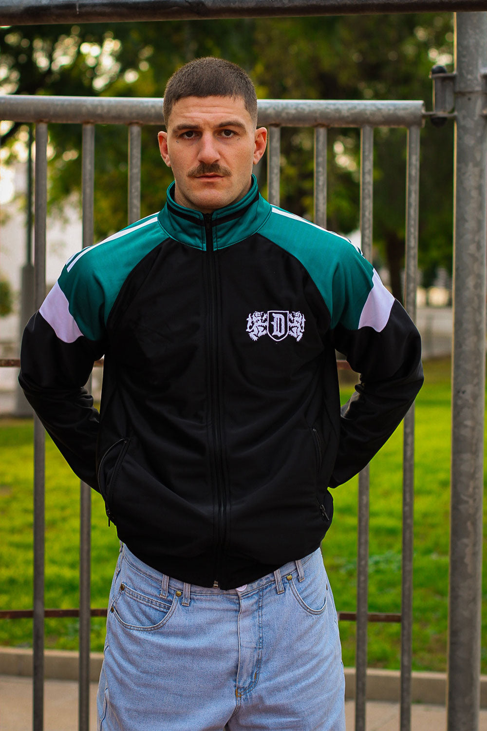Escudo bordado «D» en la parte delantera.