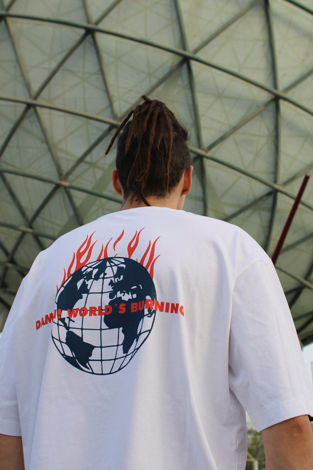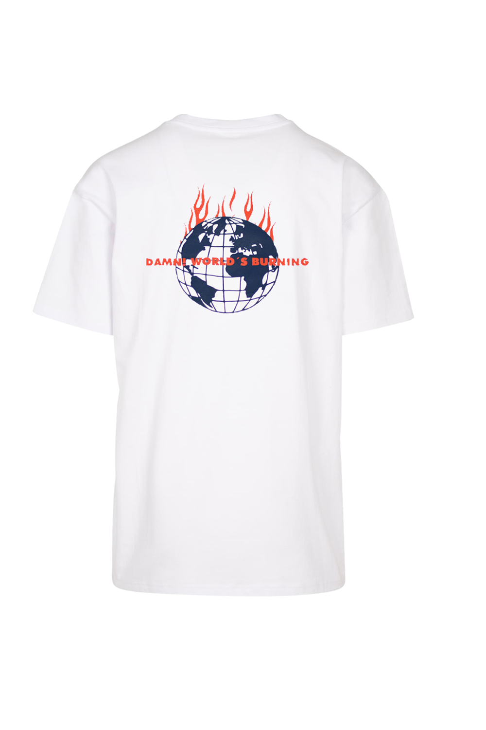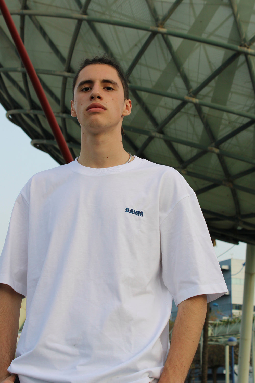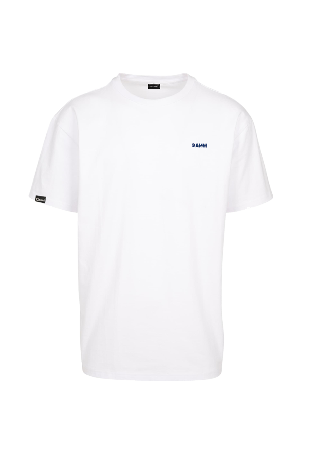 Estampaciones traseras en color azul y rojo. Bordado delantero DAMN! en color azul.